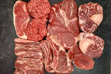 Included in this selection are steaks for special occasions, a chuck roast and beef shanks for slow cooking, and ground beef which can be used in so many ways. This bundle weighs about 28 pounds and will take up about 2 cubic feet of freezer space, which is roughly the amount of space of a dorm size mini fridge.
