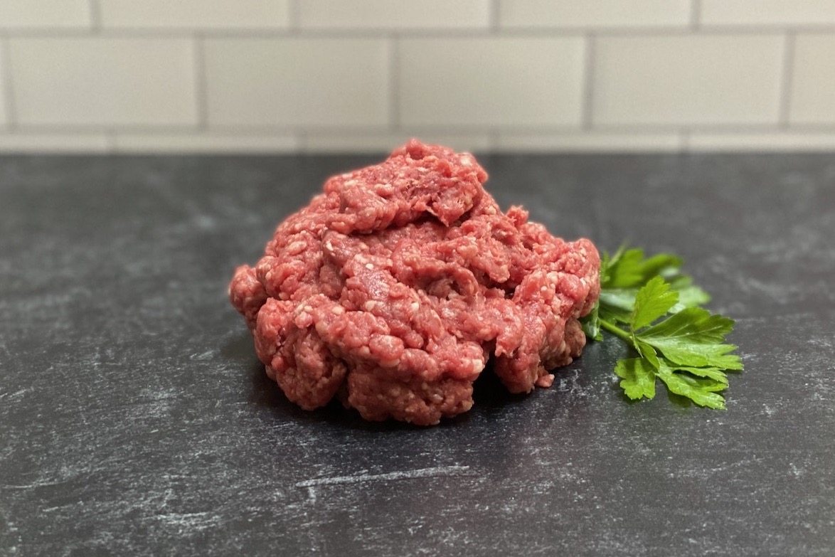 Our ground beef is a mixture of the trim from the entire grass-fed animal. It contains 80% lean meat and 20% pasture raised fat along with a large amount of omega fatty acids. This ratio provides the perfect amount of robust beefy flavor and makes a great burger.
